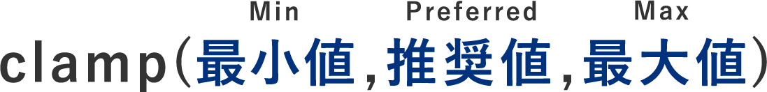 ・推奨値 (Preferred)…「画面に合わせて変化したい!」というメインの値、推奨値。これに「vw」(画面幅)を使って滑らかに変化させます。