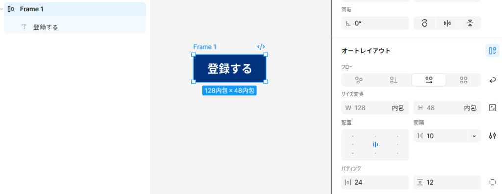 別の方法:レイヤーを選択した状態で、右側のデザインパネルの「オートレイアウト」セクションにある「+」ボタンをクリックすることでも適用できます。