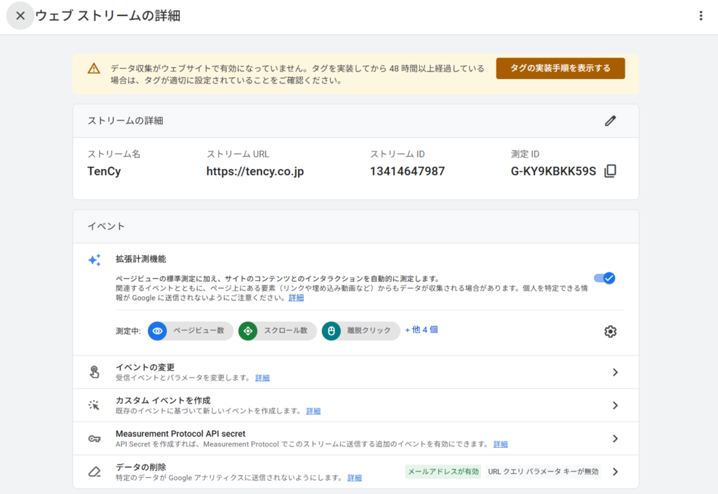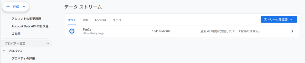 ストリームの詳細がポップアップされるので、測定IDを制作会社に伝えて、制作会社側がサイトへのID設定作業を行うことで、データの収集が可能となります。