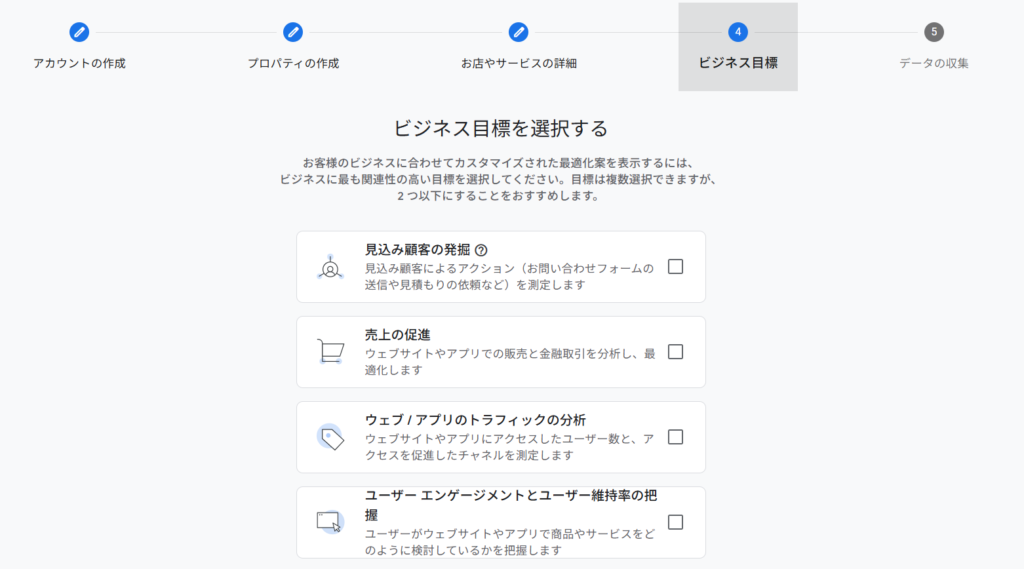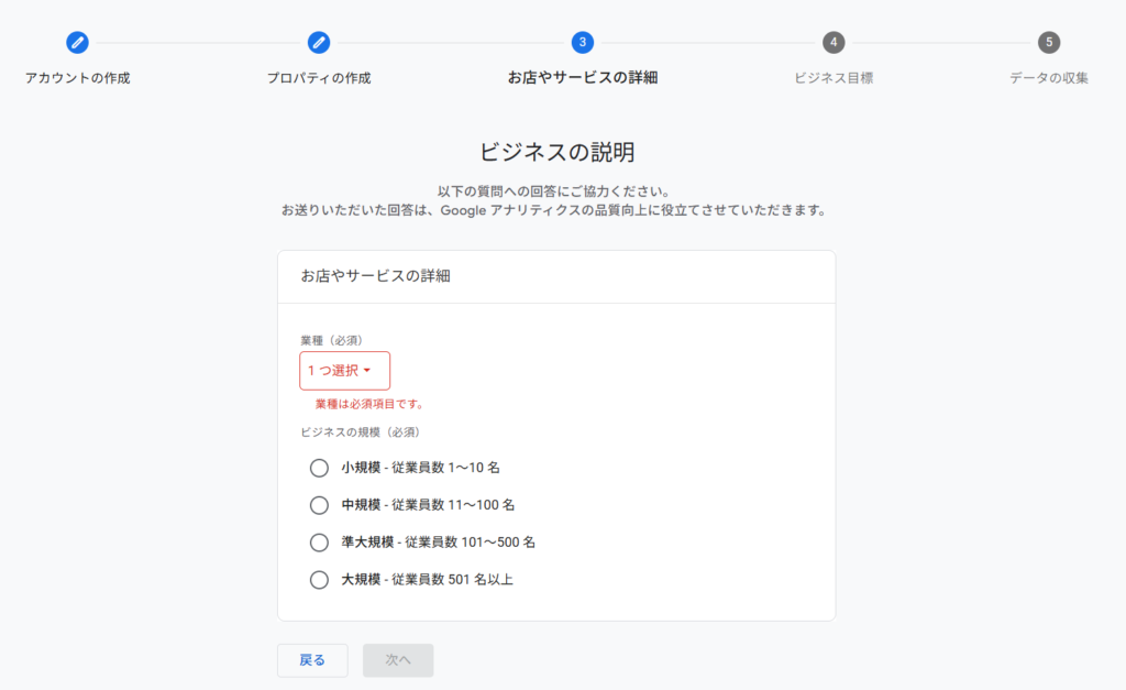 続いて、プロパティの作成に移ります。プロパティ名も、対象のサイトとの紐づけが分かりやすいものにしておくと良いでしょう。タイムゾーンと通貨は、変えるのが必須では無いですが、日本と日本円にしておきましょう。