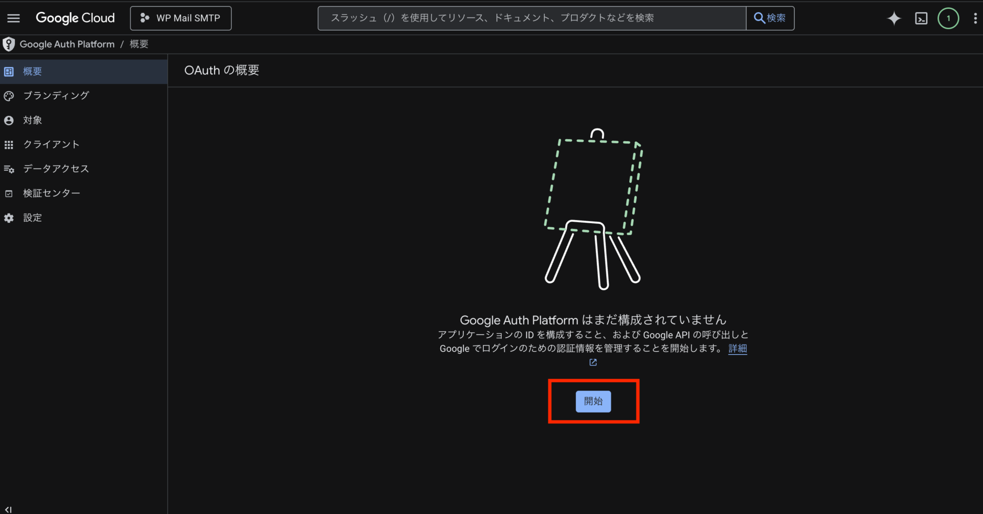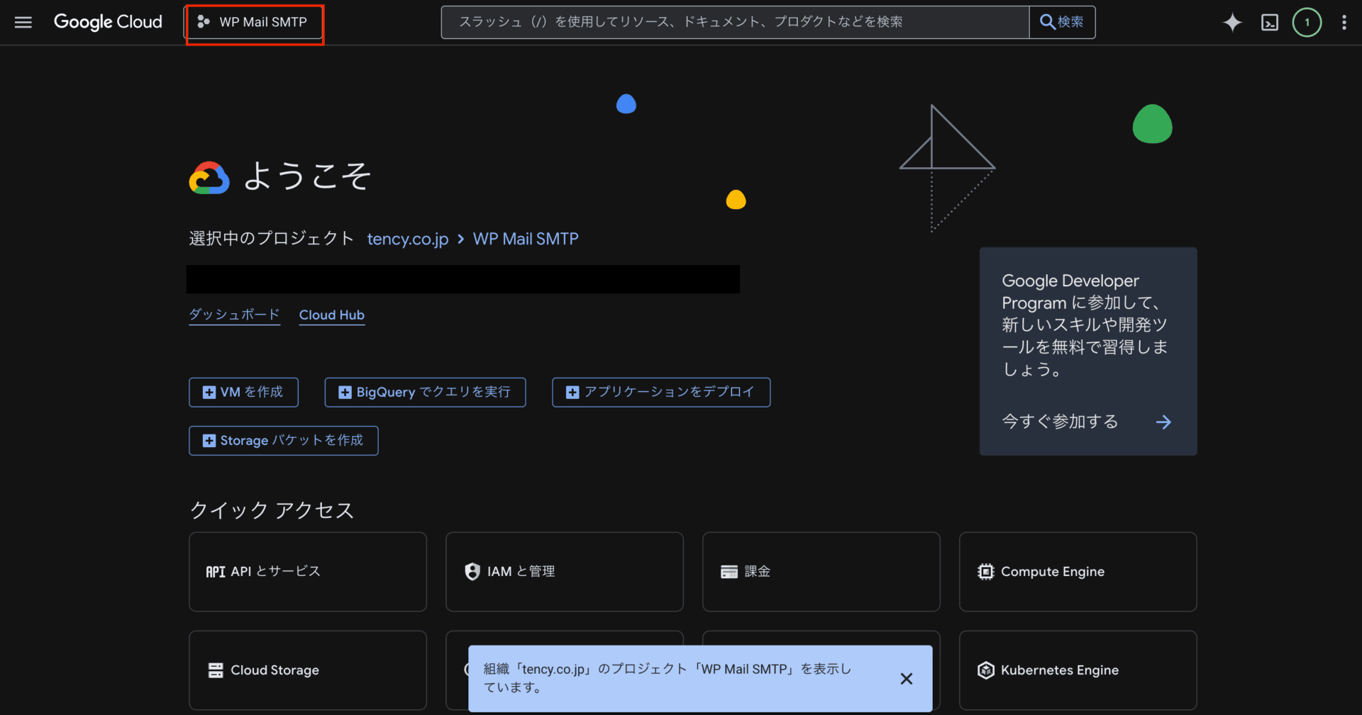 - プロジェクト作成後、管理画面左上のプロジェクト名が作成した「WP Mail SMTP」になっているかを確認してください。