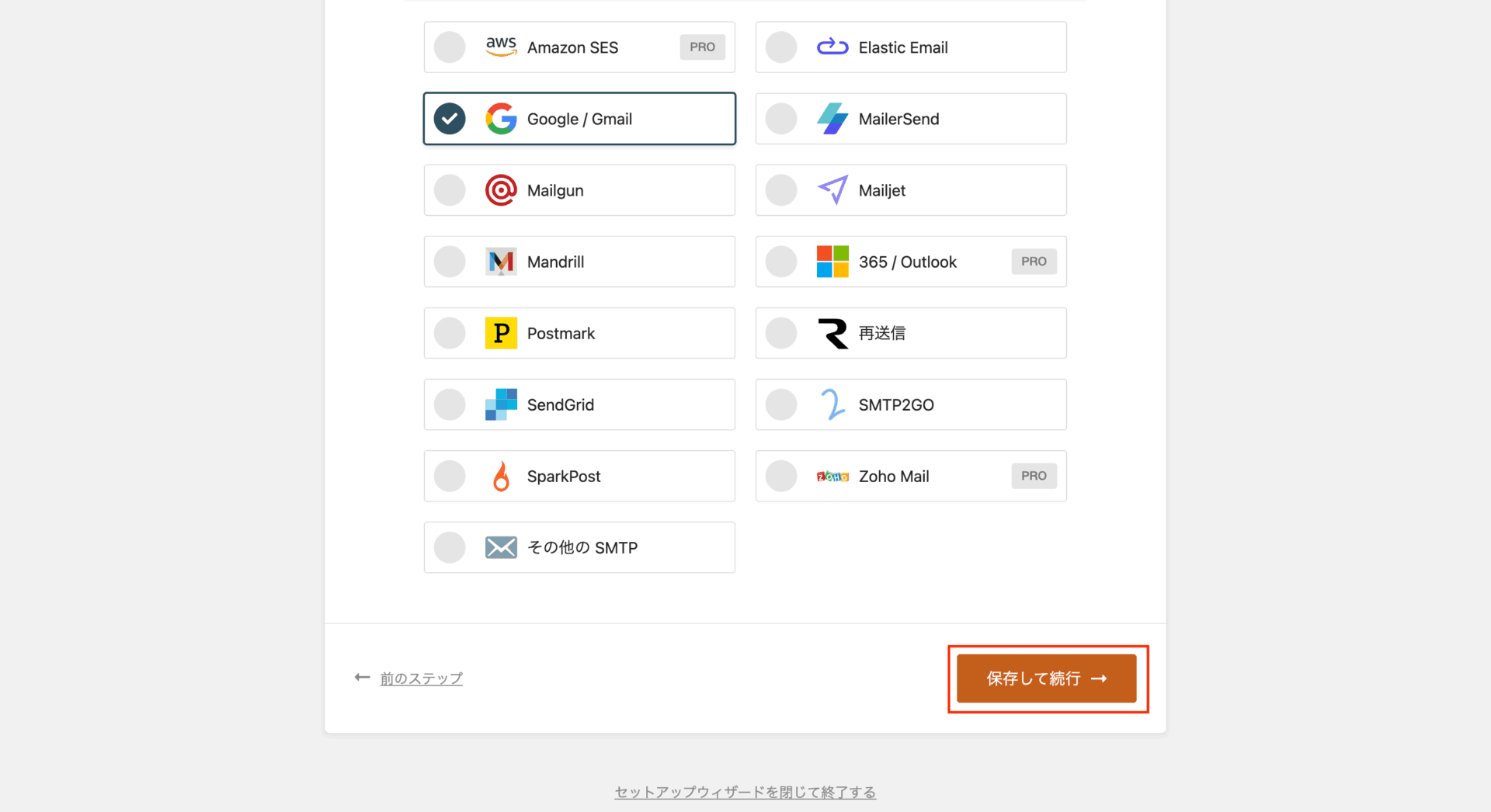 これでGmailとの連携は完了です!「保存して続行」をクリックして次へ進みましょう。