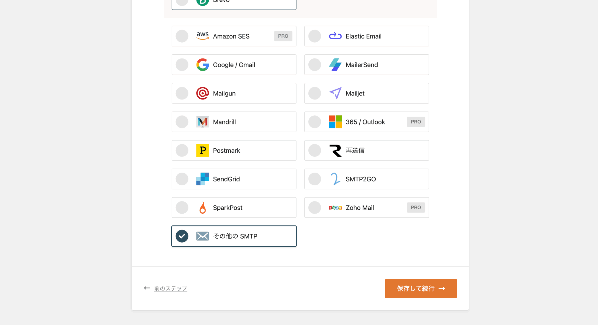 レンタルサーバーのアドレスを利用する場合は、メーラーの選択画面の一番下にある 「その他の SMTP (Other SMTP)」 を選択して次へ進んでください。