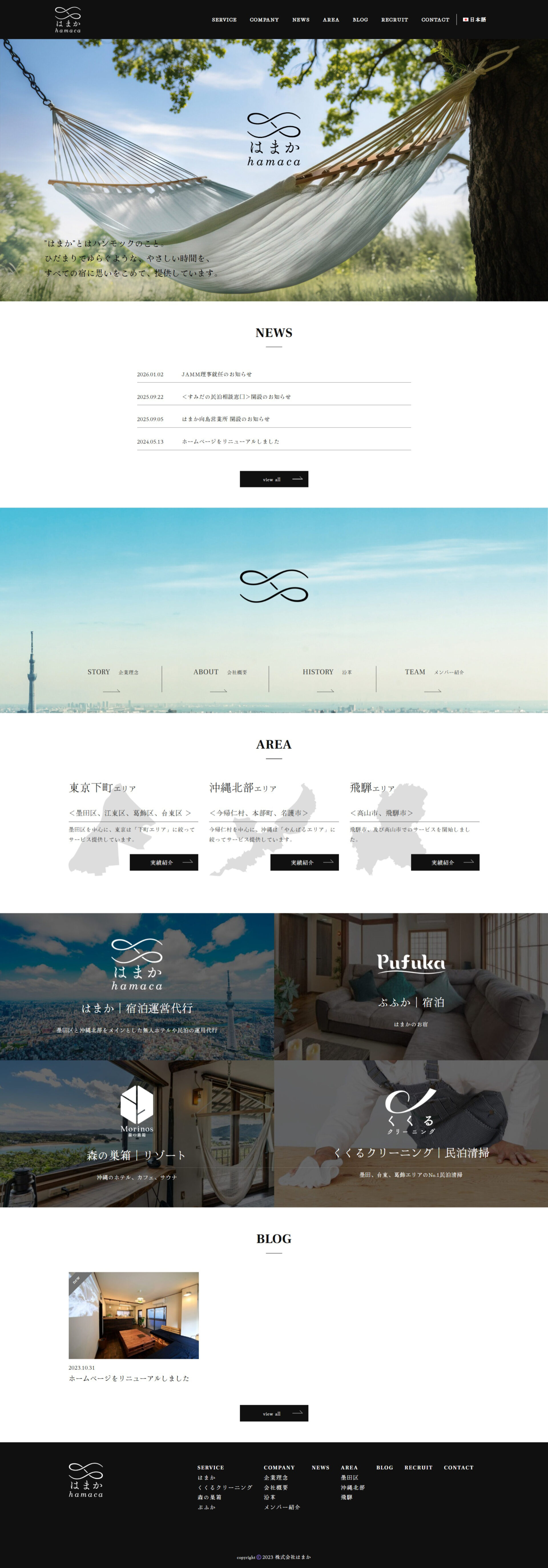 ロゴの要素を軸に、モダンでやさしい落ち着きのあるデザインに。サービスの信頼感や、心地よい宿づくりの姿勢が自然と伝わるようまとめています。